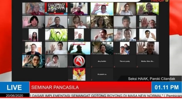 Jakarta, INDONEWS.ID-- Paroki Santu Stefanus Cilandak menggelar webinar bertajuk “Pancasila Filosofi Dasar Impelementasi Semangat Gotong Royong di Masa New Normal’ di Jakarta, Sabtu (20/6).