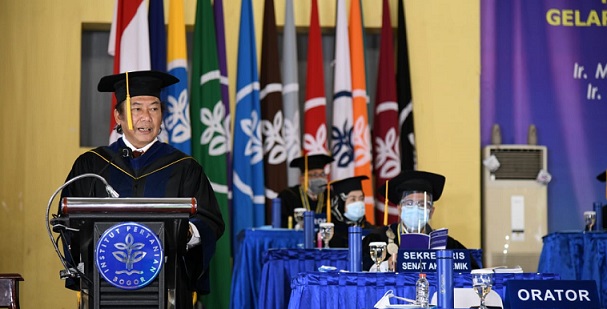 Prof Dr M Syukur menyampaikan diberikannya gelar doktor kehormatan kepada dua tokoh ini didasarkan pada hasil putusan Sidang Pleno Senat Akademik (SA) IPB University tanggal 27 Agustus 2020 yang menetapkan dan menyetujui pemberian gelar doktor kehormatan (doktor Honoris Causa) kepada Ir Muhammad Gunung Soetopo dalam bidang Ilmu Tanah dan Ir Muhammad Nadjikh (alm) dalam bidang Teknologi Industri Pertanian.