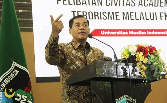Makassar, INDONEWS.ID -- Direktur Pencegahan Badan Nasional Pencegahan Terorisme (BNPT), Brigjen Pol. R. Ahmad Nurwakhid, SE, MM, mengatakan bahwa keterlibatan kampus adalah kunci pencegahan radikalisasi di lingkungan perguruan tinggi. Untuk itu, ia mengapresiasi langkah yang dilakukan Universitas Muslim Indonesia (UMI) Makassar yang menggelar program Pesantren Pencerahan Qalbu bagi mahasiswa dan dosen.