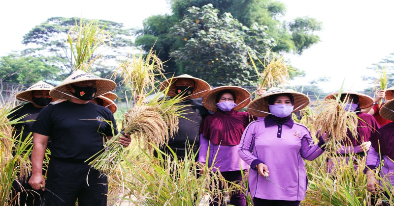 Serpong, INDONEWS.ID - Komandan Kodiklat TNI, Mayor Jenderal TNI Dr. Sudirman, S.H., M.H., M.M. menggelar panen padi dalam polybag (PDP) yang dilaksanakan di lahan ketahanan pangan Kodiklat TNI Serpong, Tangerang Selatan, Selasa (17/11).
