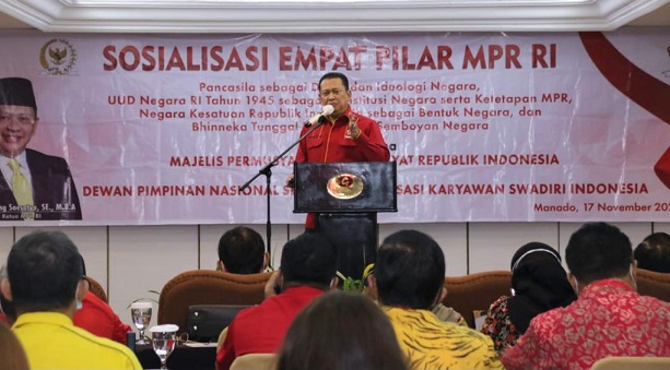 "Sebagai konsensus nasional yang telah menyatukan beragam entitas budaya, suku, agama, dan golongan, Pancasila adalah kunci eksistensi bangsa Indonesia yang tetap bersatu meskipun menghadapi berbagai tantangan kebangsaan dan dinamika zaman. Karenanya, kegiatan pemasyarakatan nilai-nilai Pancasila dilakukan untuk memastikan bahwa Pancasila senantiasa hadir pada setiap relung kehidupan ketatanegaraan dan segenap aspek kehidupan masyarakat," urai Bamsoet.