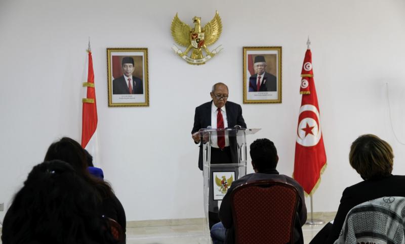 Pada Konferensi Pers tersebut, Dubes RI Tunis Ikrar Nusa Bhakti menyampaikan antara lain sejarah hubungan Indonesia – Tunisia yang dimulai sejak awal 1950-an dimana Pemerintah Indonesia menerima kunjungan pimpinan Tunisian Independence Movement, Habib Bourgiba