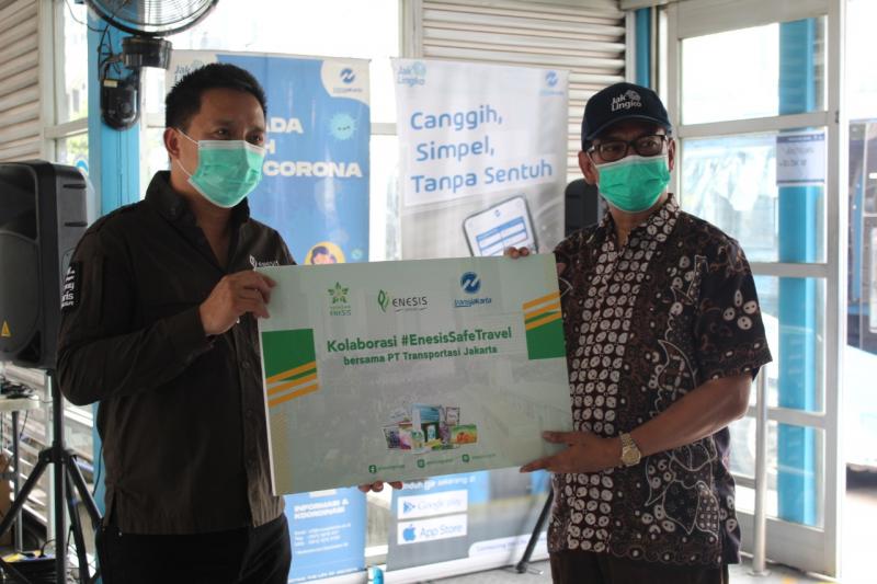 Penyerahan secara simbolis diberikan kepada Direktur Eksekutif Transformasi Perusahaan Transjakarta, Bapak Iwan Hartawan oleh Chief Sales & Marketing Enesis Group, Bapak Ryan Tirta Yudhistira di Halte Harmoni, Jakarta.