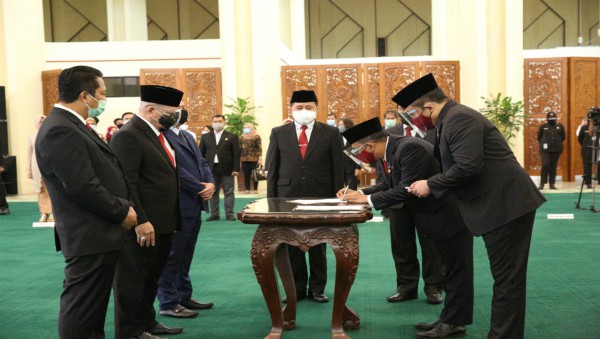 Jakarta, INDONEWS.ID - Ketua DPD RI AA LaNyalla Mahmud Mattalitti melantik Rahman Hadi sebagai Sekretaris Jenderal DPD RI, dan Lalu Niqman Zahir sebagai Deputi Bidang Administrasi.