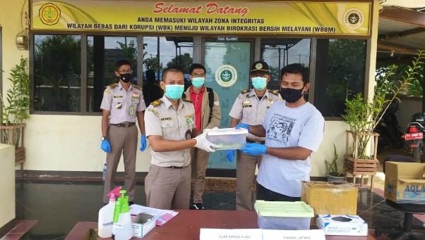 Saat melewati mensin ×-ray, petugas mencurigai adanya paket boks dengan keterangan barang miniatur. Ketika dibuka, ternyata didapatkan satu ekor ular sanca hijau dan satu ekor biawak lapang.