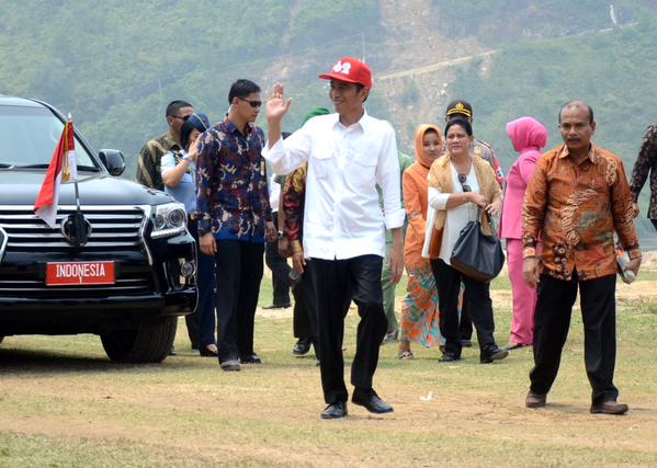 Mantan menteri Perencanaan Pembangunan Nasional Andrinof Chaniago ikut menemani Presiden Joko Widodo saat akan meresmikan Percepatan Pembangunan Kawasan Wisata Bahari Terpadu Mandeh, Kabupaten Pesisir Selatan, Provinsi Sumatera Barat (Sumbar), Sabtu (10/10). Andrinof diberhentikan Presiden Jokowi dari kabinet kerja atau jabatannya sebagai menteri pada pekan kedua Agustus 2015.