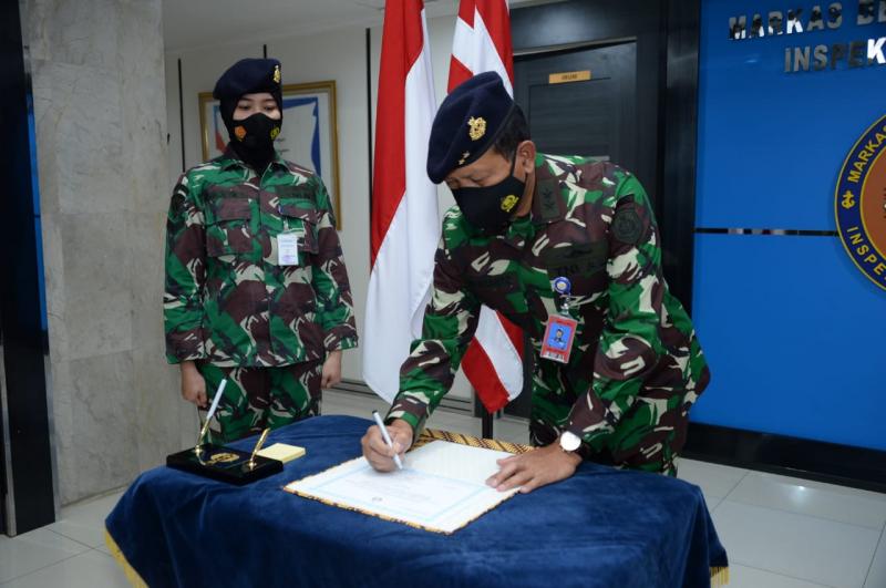 Jakarta, INDONEWS.ID -- TNI Angkatan Laut (TNI AL) berkomitmen penuh melaksanakan Reformasi Birokrasi (RB) melalui pencanangan atau deklarasi pernyataan siap dalam Pembangunan Zona Integritas (ZI) yang ditandai dengan penandatanganan Pakta Integritas oleh Irjenal Laksda TNI Dr. Moelyanto dan Kolonel Laut (T) Atmudji, S.E., M.M., Satuan Kerja (Satker) Inspektorat Jenderal Angkatan Laut (Itjenal) bertempat di Gedung B2 Lantai 3, Markas Besar Angkatan Laut (Mabesal), Cilangkap Jakarta Timur. Senin, (15/3).
