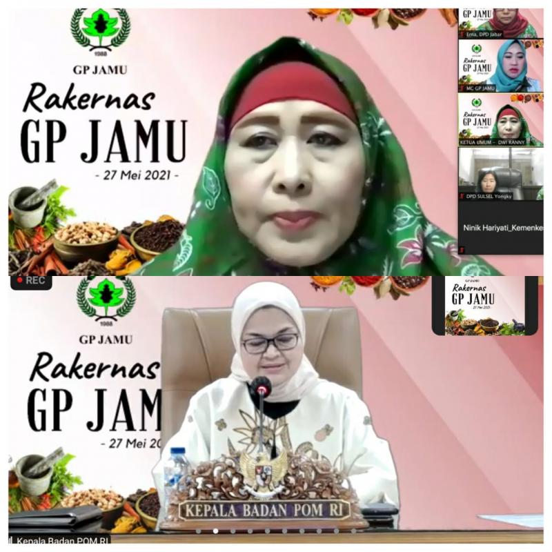 Keynote speaker Rakernas GP Jamu adalah Penny Lukito selaku Ketua Badan POM, mengatakan dalam memasyarakatkan jamu yang perlu ditegaskan kembali adalah konsep ABG ( Akademi,Dunia Usaga,Pemerintah) ditambah Community atau masyarakat. Ia menguraikan Akademik dilibatkan dalam penelitian ilmiah, Bisnis adalah pelaku usaha bidang Jamu dan Obat Tradisional yang menjaga kualitas,keamanan dan kegunaan produk jamu yang dihasilkan untuk kesehatan konsumen, Government yaitu pemerintah dalam hal ini BPOM yang mempermudah perijinan, birokrasi sertifikasi, dan membantu UMKM dalam era digital. Ia menambahkan masyarakat atau komunitas harus juga di edukasi agar melek literasi konsumsi jamu yang sehat. Penny Lukito juga menegaskan bahwa dalam mendukung implementasi UU Cipta Kerja, maka lembaga yang dipimpinya telah mengeluarkan peraturan tentang kemudahan perijinan dengan melihat tingkat resiko. Ia menklaim ada penambahan 131% produk jamu dan obat tradisional baru,yang sudah release perizinannya.