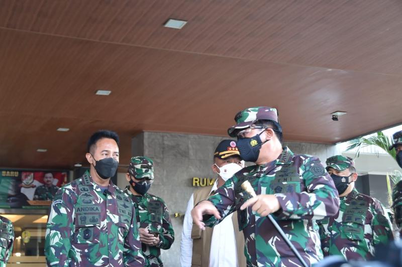 Kedatangan Panglima TNI disambut oleh Kepala Staf TNI AD Jenderal TNI Andika Perkasa yang juga langsung memberikan keterangan terkait Rumkitlap yang dibangun oleh Yonkes-1/Divif 1 Kostrad di area RSPAD Gatot Soebroto.