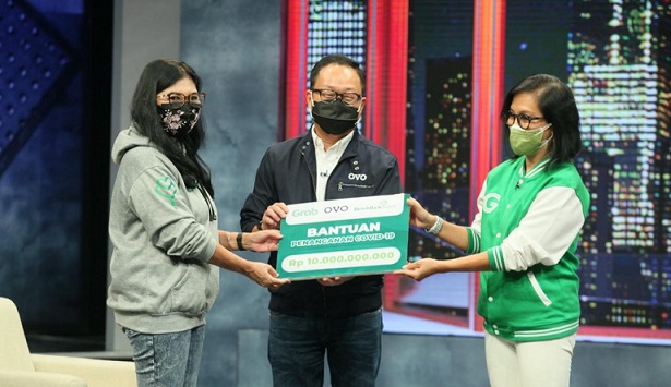 Penyerahan bantuan ini dilakukan secara virtual oleh President of Grab Indonesia Ridzki Kramadibrata, dan Neneng Goenadi selaku Country Managing Director of Grab Indonesia kepada Menteri Kesehatan Republik Indonesia, Budi Gunadi Sadikin serta Jusuf Kalla, Ketua Umum Palang Merah Indonesia.