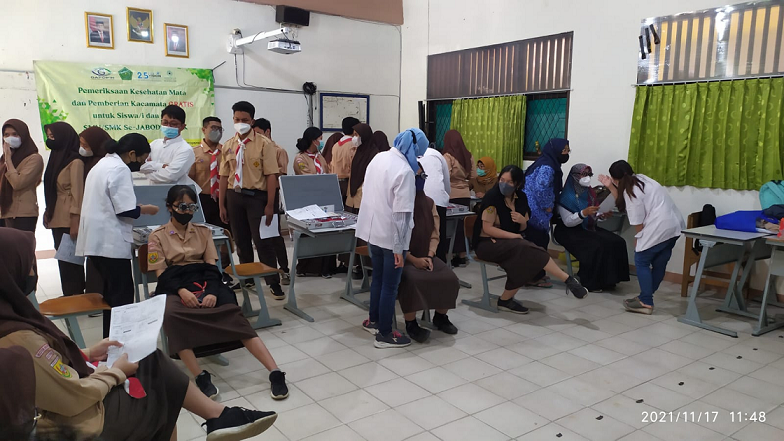“Bayangkan bahwa setengah penduduk dunia akan mengalami miopia kalau kami tidak berusaha untuk melakukan edukasi, juga melakukan pemeriksaan mata dan membagikan kacamata gratis. Kami menyasar guru dan siswa karena kasus miopia cenderung diderita oleh orang yang berusia makin muda, termasuk siswa, bahkan siswa SD,” ujar Wahyu.