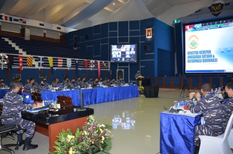 Jakarta, INDONEWS.ID - Pangkoarmada I Laksda TNI Arsyad Abdullah memimpin Rapat Staf dan Komando (Rasko) Tahun 2022 diikuti secara tatap muka dan virtual, di Gedung O.B. Syaaf Mako Koarmada I, Jl. Gunung Sahari, Jakarta Pusat, Kamis (10/3/2022)