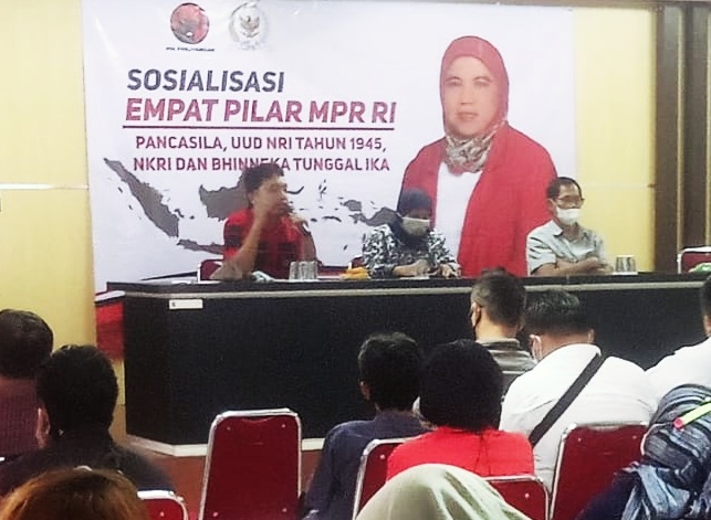 Wakil Ketua Komisi VIII DPR RI, Diah Pitaloka melakukan sosialisasi tentang pentingnya pemahaman ideologi dan 4 pilar, pada Sabtu (26/3/2022).