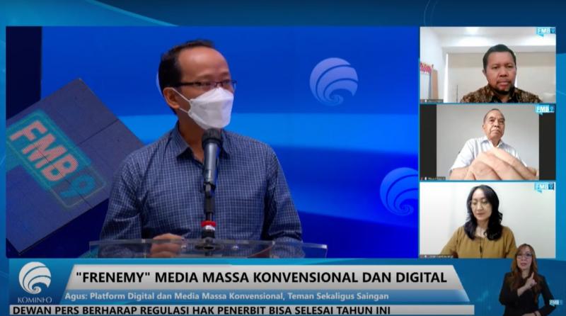 "Menghadapi platfom digital ini juga tidak gampang. Mereka adalah teman sekaligus musuh (frenemy). Publisher dengan mereka hubungannya bukan hanya kompetisi tapi juga coopertaion," kata Agus di sela-sela pemaparannya.