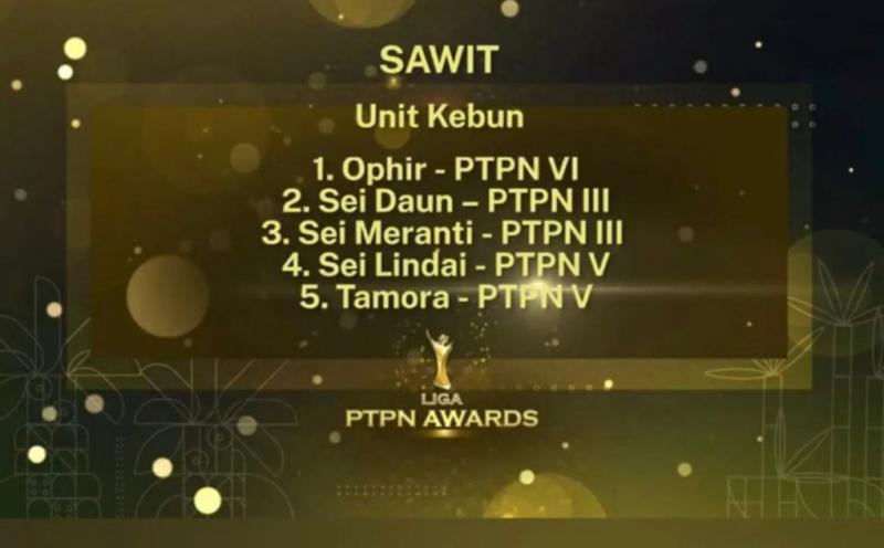 "Dua kebun teh kita dapat penghargaan. Khusus kebun sawit, unit usaha Ophir di Sumbar, juara pertama," kata Kasubag Tanaman, Fery Pratama.