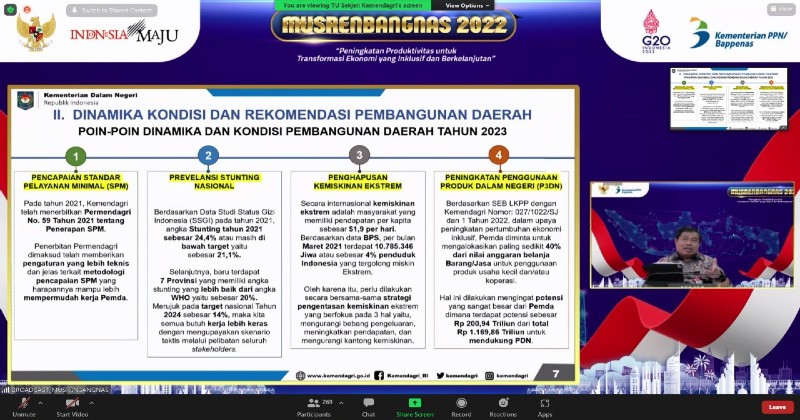 Jakarta, INDONEWS.ID - Sekretaris Jenderal (Sekjen) Kementerian Dalam Negeri (Kemendagri) Suhajar Diantoro menghadiri Musyawarah Perencanaan Pembangunan Nasional (Musrenbangnas) 2022 secara virtual, Kamis (28/4/2022).