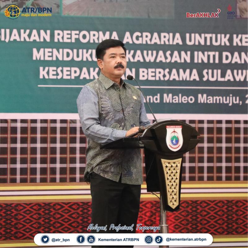 Mamuju, INDONEWS.ID - Kementerian Agraria dan Tata Ruang/Badan Pertanahan Nasional (ATR/BPN) mendapat mandat untuk menjalankan Program Strategis Nasional (PSN) Reforma Agraria. Sementara itu, salah satu dari tiga prioritas Menteri ATR/Kepala BPN, Hadi Tjahjanto adalah mendukung pembangunan Ibu Kota Nusantara (IKN).