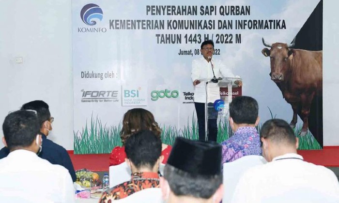 "Khususnya di sektor Informatika dan telekomunikasi, infrastruktur telekomunikasi upstream dan downstream merupakan enabler bagi bangsa. Mudah-mudahan kurban itu menambah manfaat dari kurban Iduladha yang kita lakukan hari ini 1433 Hijriyah tahun 2022, dan kurban-kurban yang kita lakukan dalam pengabdian dan penugasan kita sebagai abdi negara menambah kredit kita untuk hari akhirat bersama-sama,” ungkapnya.
