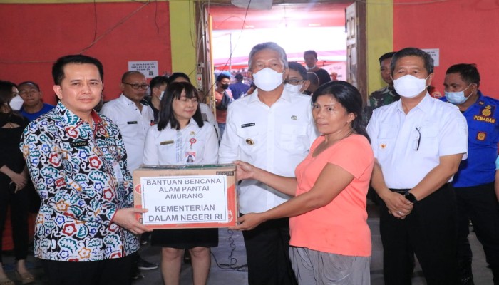 Minahasa Selatan, INDONEWS.ID - Menteri Dalam Negeri (Mendagri), Muhammad Tito Karnavian memberikan bantuan korban terdampak bencana abrasi air laut di Kabupaten Minahasa Selatan, Sulawesi Utara (Sulut).