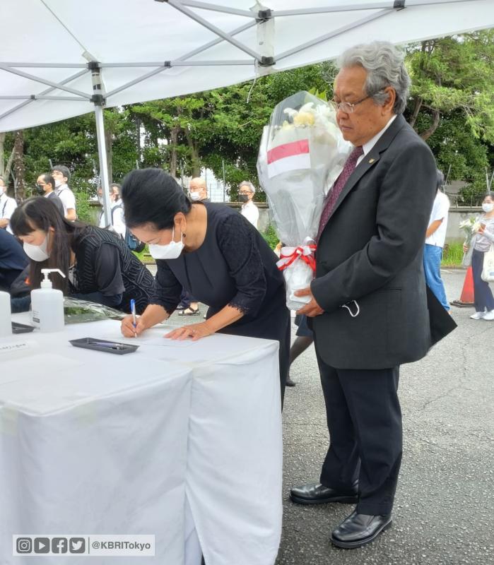 Jakarta, INDONEWS.ID - Duta Besar Republik Indonesia (Dubes RI) untuk Jepang dan Federasi Mikronesia Heri Akhmadi mewakili Pemerintah Indonesia telah menyampaikan bunga dukacita atas meninggalnya mantan Perdana Menteri Jepang Shinzo Abe.