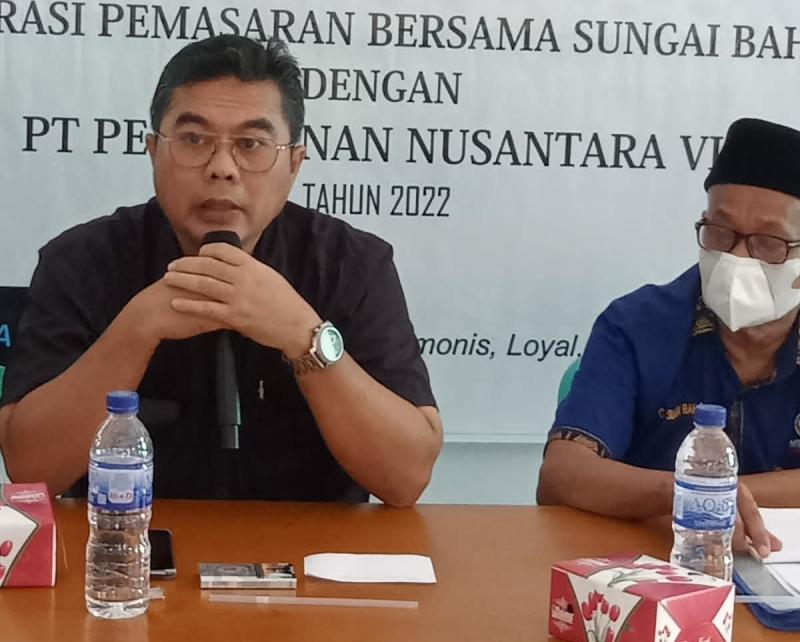 "PTPN akan membantu mulai replanting, pendanaan, pembibitan, pemeliharaan dan pemasaran sawit. Kami menjamin bibit unggul bersertifikat dan kebutuhan pupuk," papar Rio didampingi Fauzi Lubis Stafsub Plasma PTPN.