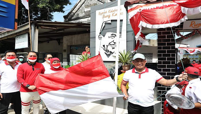 INDONEWS.ID - Menteri Dalam Negeri (Mendagri) Muhammad Tito Karnavian mengunjungi rumah kelahiran Proklamator Ir. Soekarno yang berada di Jalan Peneleh Gang Pandean IV, Nomor 40, Kecamatan Genteng, Surabaya, Jawa Timur. Kunjungan tersebut dilaksanakan pada Minggu (14/8/2022) usai menghadiri acara Gerakan Pembagian 10 Juta Bendera Merah Putih di Kota Pahlawan tersebut.