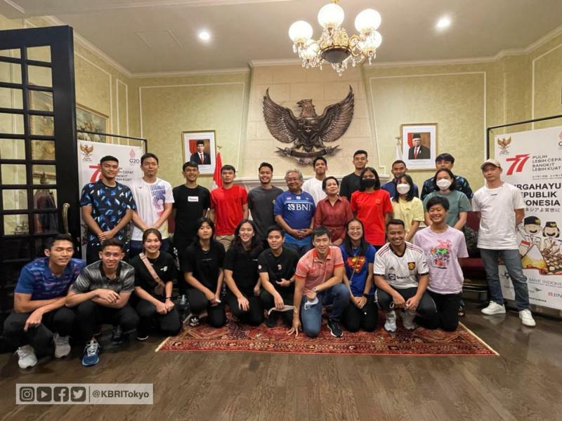 Jakarta, INDONEWS.ID - Duta Besar Republik Indonesia (Dubes RI) untuk Jepang Heri Akhmadi beserta Ibu Nuning Akhmadi menjamu 39 atlet dan ofisial tim bulu tangkis Indonesia di Wisma Duta KBRI Tokyo pada Jumat, 19 Agustus 2022. Acara dihadiri oleh pejabat dan staf KBRI Tokyo, perwakilan dari Bank Indonesia Tokyo serta BUMN Indonesia di Tokyo.