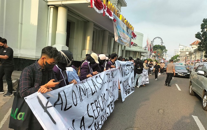 Bandung, INDONEWS.ID - Kelompok Poros Revolusi Mahasiswa Bandung (PRMB) melakukan aksi dalam rangka refleksi HUT ke-77 Tahun Kemerdekaan Indonesia yang digelar pada hari ini, Minggu (21/8). Aksi itu mulai berlangsung pada pukul 16.00 hingga 18.00 WIB, di depan Gedung Merdeka, Jl. Asia Afrika, Bandung, Jawa Barat.