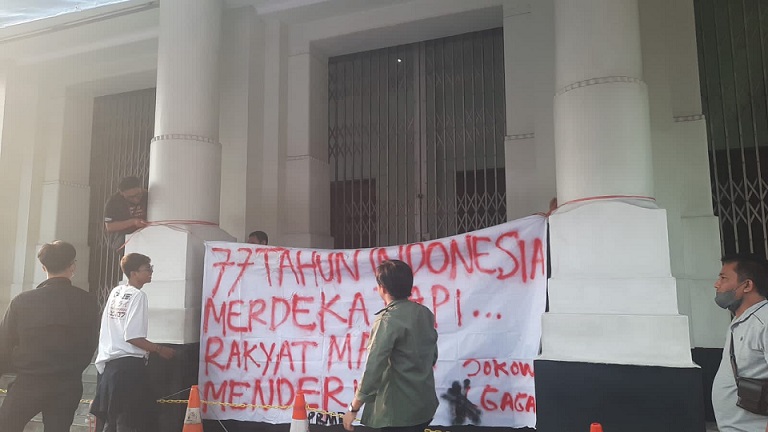 Adapun para mahasiswa tersebut menuntut pemerintahan Jokowi agar patuh dan menjalankan segala amanah konstitusi dalam mengatasi segala permasalahan ekonomi.