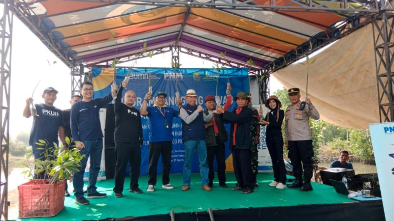 Subang, INDONEWS.ID - PT Permodalan Nasional Madani (PNM) bekerjasama dengan Pemerintah Kabupaten Subang, Dinas Lingkungan Hidup Kabupaten Subang, Dinas Kehutanan Wilayah II Purwakarta dan Kelompok Lestari Desa Langensari melaksanakan kegiatan penanaman 10.000 mangrove di Desa Langansari, Kecamatan Blanakan, Kabupaten Subang pada Sabtu (27/8).