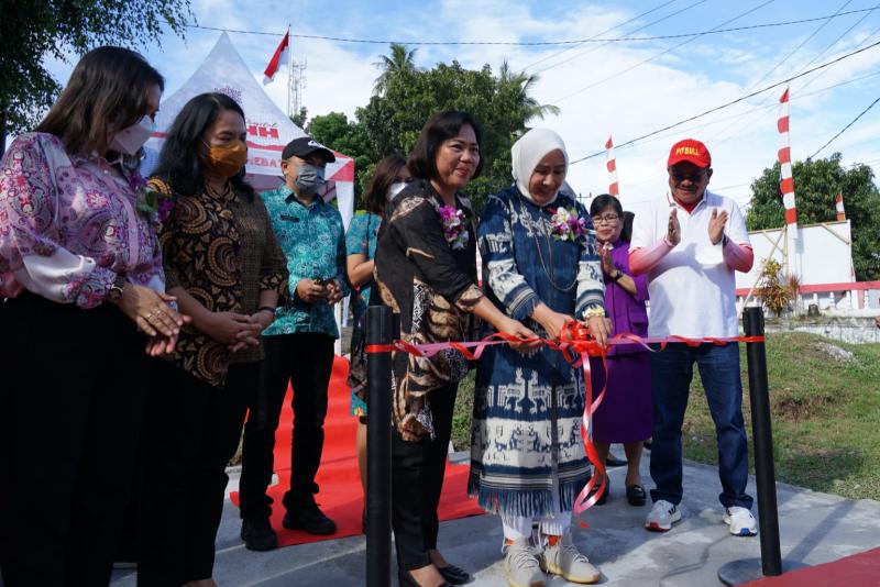 INDONEWS.ID - Ketua Umum (Ketum) Tim Penggerak Pemberdayaan dan Kesejahteraan Keluarga (TP PKK) Tri Tito Karnavian meresmikan bantuan pemerintah berupa sarana dan prasarana lapangan voli di Kecamatan Aertembaga, Kota Bitung, Sulawesi Utara, Jumat (7/10/2022).