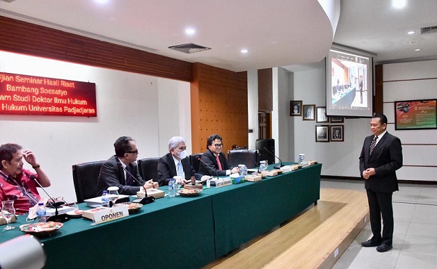 BANDUNG, INDONEWS.ID - Ketua MPR RI Bambang Soesatyo sekaligus Wakil Ketua Umum Partai Golkar berhasil menyelesaikan ujian seminar hasil riset Program Studi Doktor Ilmu Hukum di Fakultas Hukum Universitas Padjadjaran (FH Unpad), Bandung dengan nilai mutu A. Karena itu, dia bisa melanjutkan ke Sidang Tertutup yang direncanakan akan digelar pada November 2022 mendatang.