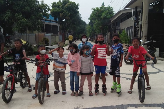 (Anak-anak Duren Baru Permai bisa bersepeda menikmati jalanan yang telah dicor. Foto: Very Herdiman/Indonews.id)