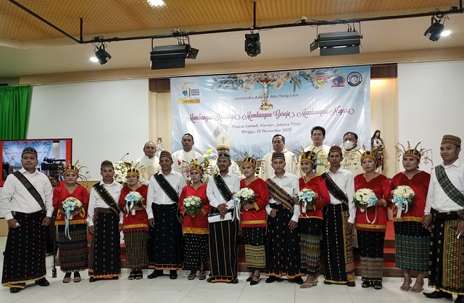 Jakarta, INDONEWS.ID - Komunitas Perempuan Manggarai (KPM) dan Forum Komunikasi Masyarakat (FKM) Flobamora Jakarta menggelar pernikahan massal untuk pasangan suami-istri (Pasutri) Katolik diaspora NTT yang tinggal di Jakarta, Bogor, Depok, Tangerang dan Bekasi (Jabodetabek).