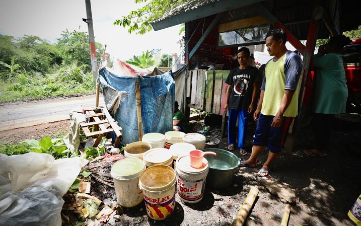 “Kebetulan kami mengungsi karena rumah rusak dan tidak bisa ditempati. Untuk air bersih untuk cuci tangan, cuci muka, nyuci baju dan lain-lain ada air dari PDAM yang bocor ke selokan. Air nya jernih bersih sekali. Kami manfaatkan,” tutur Dede, Senin (28/11).