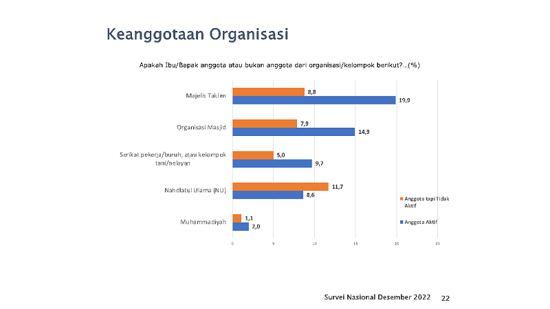 Hal lain adalah bahwa organisasi sosial yang cukup besar dan aktif serta dikenal oleh masyarakat selama ini adalah organisasi sosial keagamaan, bukan organisasi lain seperti buruh, tani, atau nelayan.