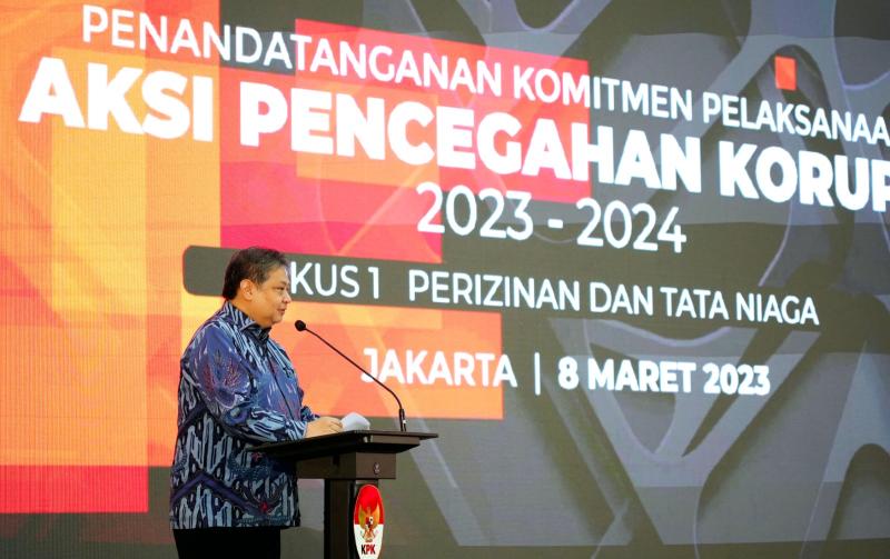 Jakarta, INDONEWS.ID - Penyelenggaraan Pemerintah bersih dan bebas dari korupsi merupakan syarat penting untuk pertumbuhan dan pemerataan ekonomi. Hal tersebut disampaikan secara tegas oleh Menteri Koordinator Bidang Perekonomian Airlangga Hartarto dalam acara Penandatanganan Komitmen Pelaksanaan Aksi Pencegahan Korupsi Tahun 2023-2024 di Gedung Merah Putih Komisi Pemberantasan Korupsi pada hari Rabu (8/03).