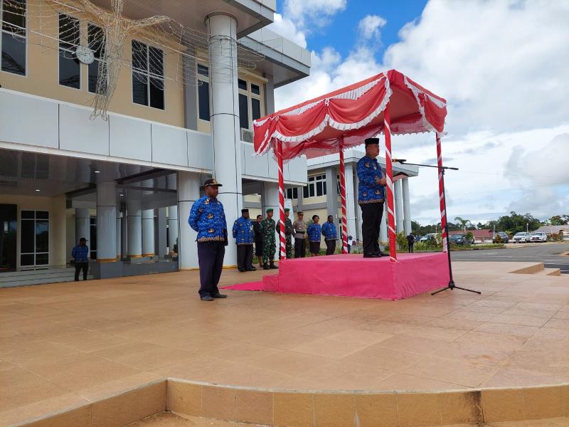 Maybrat, INDONEWS.ID - Hari Kamis tanggal 1 Juni 2023 pukul 08.00 WIT, dilaksanakan upacara peringatan Hari Lahir Pancasila di Halaman Kantor Bupati Maybrat. PJ Bupati Kabupaten Maybrat, Dr. Bernhard E. Rondonuwu, S.Sos, M.Si, bertindak sebagai Inspektur Upacara.