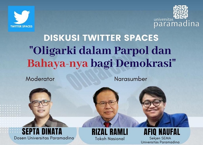 “Memang saat itu banyak aktivis mahasiswa menuntut agar partai politik pendukung orba dibubarkan. Sempat terjadi demo ke kantor Golkar dan lain-lain. Tetapi pada titik itu kita anggap partai-partai akan menyesuaikan diri. Tetapi ternyata saran bahwa partai-partai pendukung orba dibubarkan mungkin jika dilihat pada hari ini, itu ada benarnya,” ujar Tokoh Nasional, DR Rizal Ramli dalam diskusi bertajuk “Oligarki Dalam Parpol dan Bahanya Bagi Demokrasi” yang digelar oleh Universitas Paramadina – Diskusi Twitter Space, pada Jumat malam (7/7).