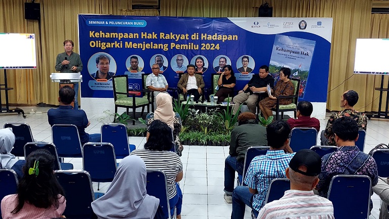Acara seminar sekaligus peluncuran buku tersebut mengambil tema “Kehampaan Hak Rakyat di Hadapan Oligarki Menjelang Pemilu 2024”, pada Kamis (13/7).