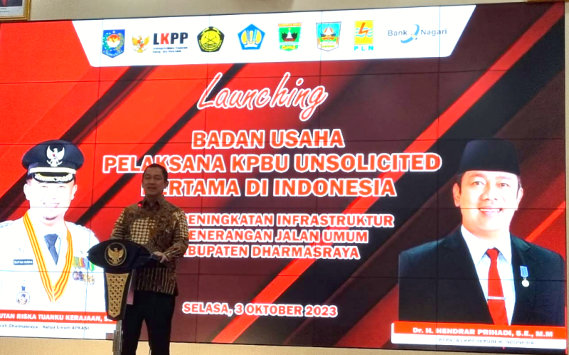 Lembaga Kebijakan Pengadaan Barang/Jasa Pemerintah Republik Indonesia (LKPP RI) dampingi program peningkatan infrastruktur Alat Penerangan Jalan (APJ) di Kabupaten Dharmasraya, Provinsi Sumatera Barat. Pengadaan tersebut merupakan pengadaan dengan Skema Kerja Sama Pemerintah dan Badan Usaha (KPBU) Unsolicited pertama untuk APJ yang dilakukan di Indonesia.
