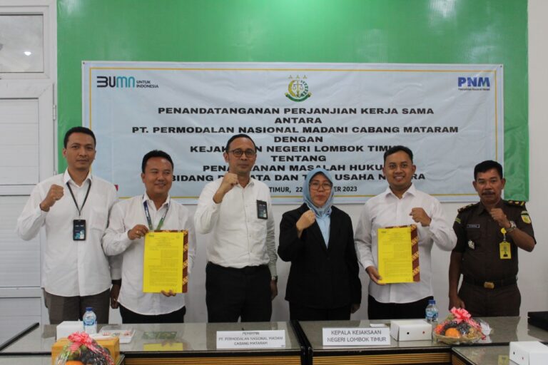 PT Permodalan Nasional Madani (PNM) Cabang Mataram dan Kejaksaan Negeri Lombok Timur resmi menjalin kerja sama dalam penanganan permasalahan hukum perdata. Kerja sama ini bertujuan untuk memberikan bantuan hukum kepada masyarakat, khususnya pelaku usaha mikro dan ultra mikro yang dibina oleh PNM.