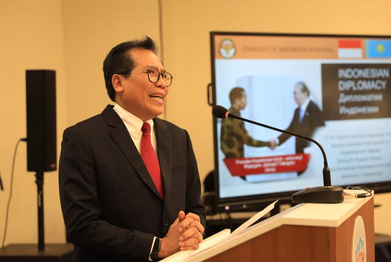 Duta Besar RI untuk Kazakhstan dan Tajikistan, Dr. M. Fadjroel Rachman dalam sambutannya menyampaikan bahwa 30 tahun persahabatan Indonesia dan Kazakhstan merupakan momentum bersejarah. “Indonesia dan Kazakhstan dalam kerangka 30 tahun hubungan diplomatik telah menginjak milestone bersejarah dari segala sektor dengan seluruh stakeholder, khususnya diplomasi ekonomi yang saat ini menjadi fokus kerja diplomasi RI di negara akreditasi”.