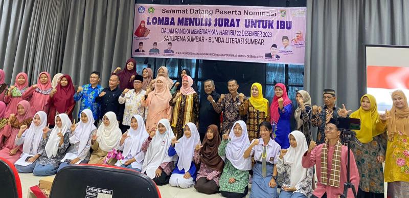 Presentasi Nominator Lomba Menulis Surat untuk Ibu berlangsung Kamis (14-12-2023), di aula Dinas Kebudayaan Sumbar jalan Samudra Padang. Presentasi Lomba Menulis Surat untuk Ibu dibuka Bunda Literasi Sumbar Hj. Harneli Bahar Mahyeldi, dihadiri Kepala Dinas Kebudayaan Sumbar Syaifullah, Ketua DPD SatuPena Sumbar Sastri Bakry, Sekretaris DPD SatuPena Sumbar Armaidi Tanjung, Ketua Panitia Pelaksana Lomba Menulis Surat untuk Ibu Andri Satria Masri, peserta Nominasi kategori Siswa dan Guru SMA, SMK dan Madrasah Aliyah se- Sumatera Barat.