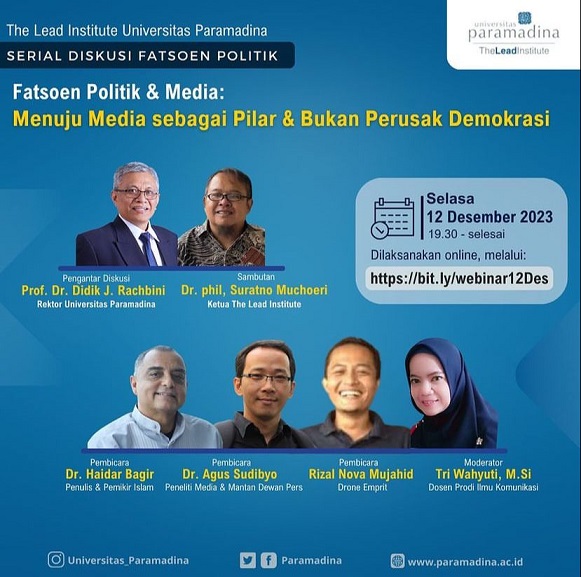 Jakarta, INDONEWS.ID - The Lead Institute Universitas Paramadina menggelar diskusi bertajuk “Fatsoen Politik dan Media: Menuju Media sebagai Pilar dan Bukan Perusak Demokrasi”, pada Selasa (12/12).