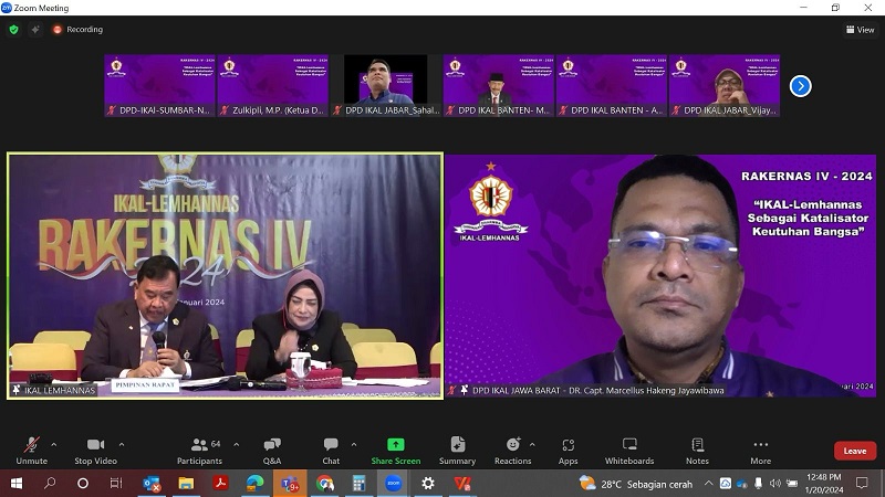 Jakarta, INDONEWS.ID - Dewan Pimpinan Pusat Ikatan Keluarga Alumni Lemhannas (DPP IKAL), sebuah organisasi tempat berhimpunnya para pemikir intelektual yang berwatak pejuang dan berwawasan negarawan, mengadakan Rapat Kerja Nasional (Rakernas) IV Tahun 2024 yang berlangsung di Gedung Panca Gatra, Lemhannas RI, Jakarta, pada Sabtu (20/1/2024).