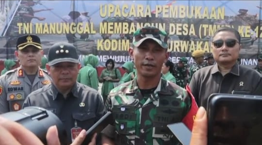 “Kita berharap tentunya kegiatan yang dilakukan ini bisa berjalan dengan lancar dan sukses. Intinya adalah kebersamaan, silaturahmi. Namanya juga manunggal, ini salah satu bentuk nyata kemanunggalan TNI dengan masyarakat. Dan kita juga berharap tentunya kegiatan ini bisa betul-betul memberikan dampak kepada masyarakat. Jalan yang dibangun dengan tujuan memberi akses tidak hanya untuk lalu lintas orang saja, tetapi juga untuk lalu lintas kegiatan atau aktivitas ekonomi, karena kita lihat disini masyarakat kita cukup giat berkebun dan lain-lain sebagainya. Dan hasil-hasil dari ekonomi masyarakat ini bisa dengan lancar dipermudah untuk dibawa ke pasar-pasar. Kemudian juga untuk anak-anak yang bersekolah juga dapat lancar jalannya dan lain-lain sebagainya," jelas Sang Kepala Daerah Purwakarta dihadapan awak media.