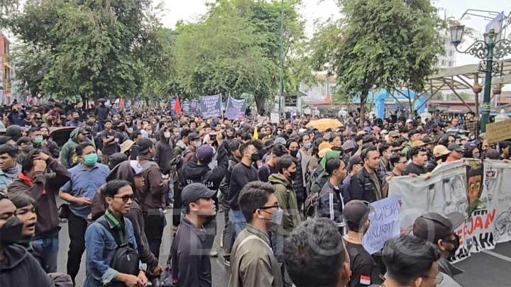 Pantauan media di lokasi, ribuan massa yang kompak mengenakan baju hitam memadati jalan Malioboro mulai pukul 11.30 WIB. Alhasil jalanan Malioboro pun lumpuh dan akses lalu lintas menuju jalan itu ditutup dan dialihkan sementara ke ruas lain.