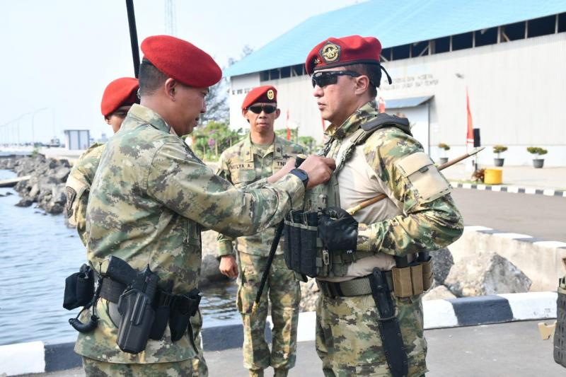 Jakarta, INDONEWS.ID - Komando Pasukan Katak (Kopaska) sematkan brevet kehormatan ke Komandan Kodiklatal dan Panglima Koarmada I. Sebelum menerima brevet dua Perwira tinggi TNI AL tersebut ikut menumpas pelaku teror yang menguasai dermaga dan kapal cargo.
