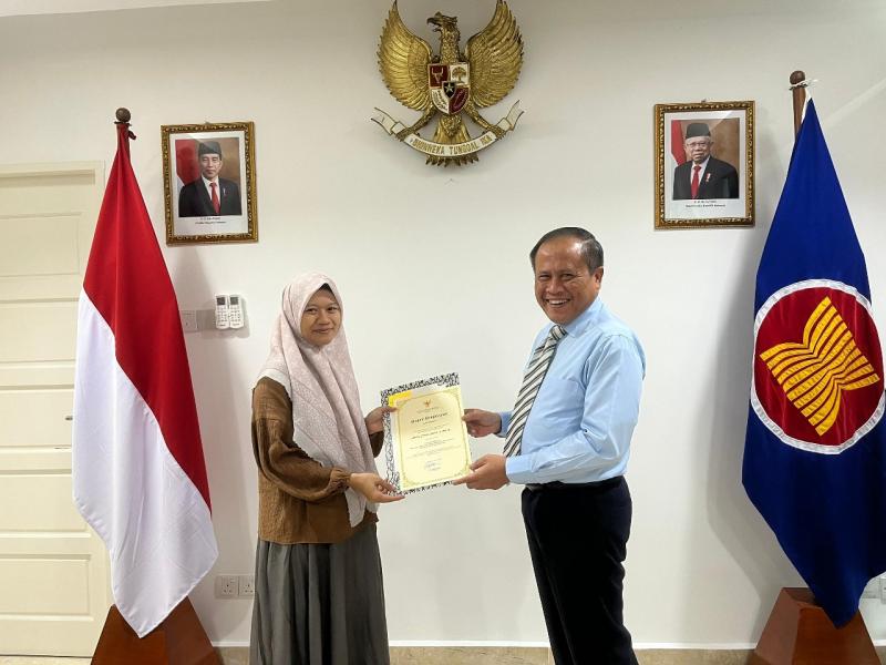 Tawau, INDONEWS.ID - Sebanyak 10 orang guru bina yang telah bertugas mengajar di berbagai Community Learning Center (CLC) atau tempat kegiatan belajar bagi anak-anak Indonesia hingga setingkat sekolah lanjutan tingkat pertama di Sabah menerima piagam penghargaan dari Konsul RI Tawau Aris Heru Utomo. Penyerahan piagam dilakukan dalam pertemuan yang dilakukan di Konsulat RI, Selasa (27/08/2024).